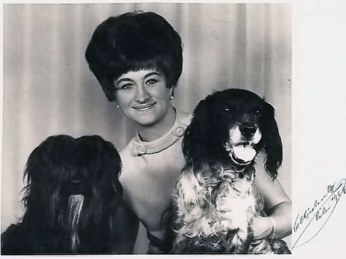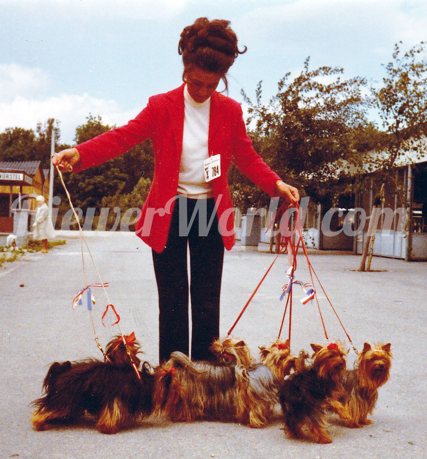 Gertrud Biewer at a dog show with her Friedheck Yorkshire Terriers