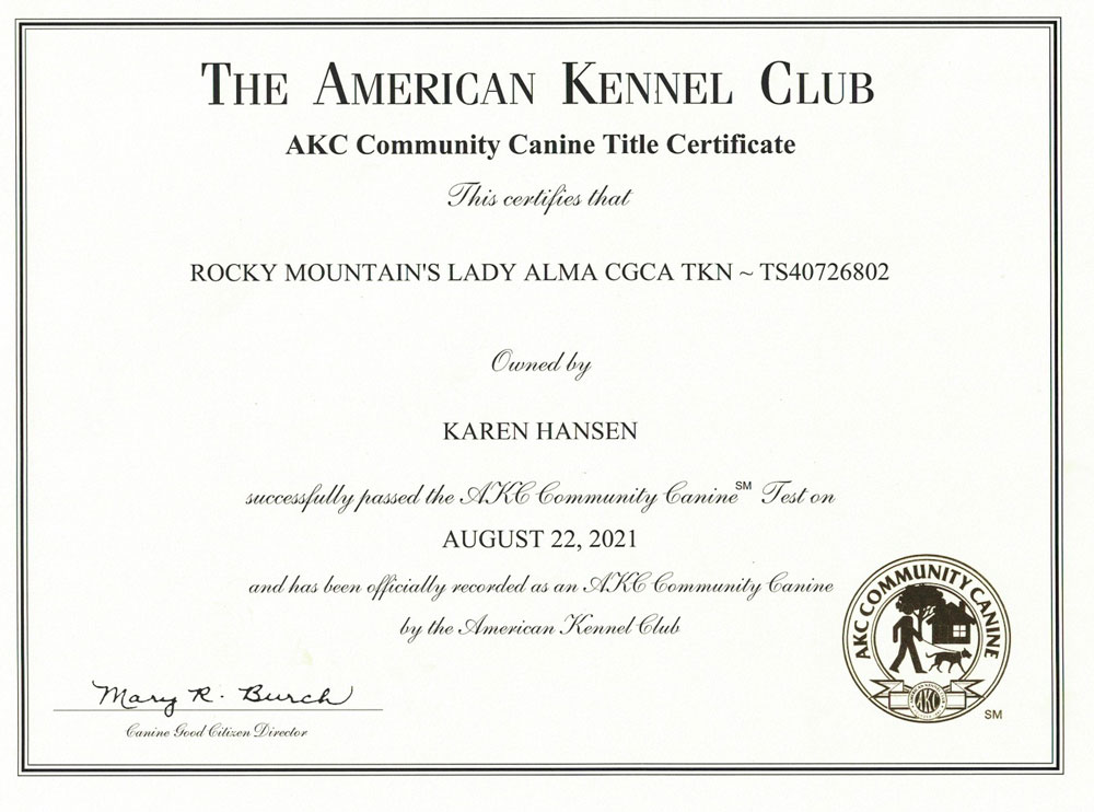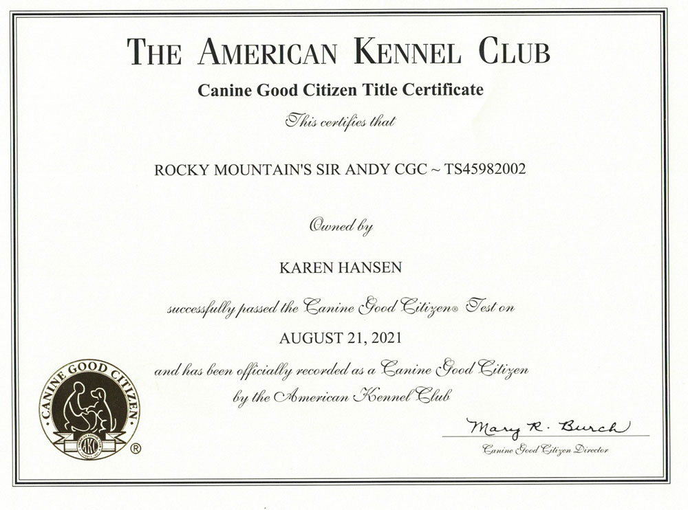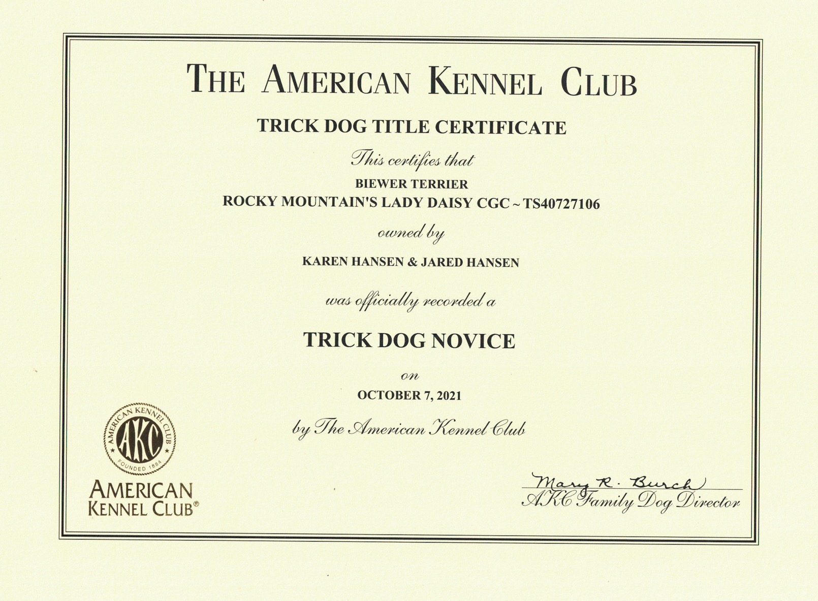AKC Trick Dog & CGC Certificates Rocky Mountain's Lady Alma CGC CertificateRocky Mountain's Sir Andy CGC CertificateRocky Mountain's Sir Anthony CGC CertificateRocky Mountain's Lady Ava CGC CertificateRocky Mountain's Lady Daisy CGC CertificateRocky Mountain's Lady Gina CGC CertificateRocky Mountain's Lady Greta CGC CertificateRocky Mountain's Lady Hailey CGC CertificateRocky Mountain's Lady Heidi CGC CertificateRocky Mountain's Lady Jolene CGC CertificateRocky Mountain's Lady Jolly CGC CertificateRocky Mountain's Lady Kendra CGC CertificateRocky Mountain's Lady Leila CGC CertificateRocky Mountain's Sir Remi Jr. CGC CertificateRocky Mountain's Lady Talia CGC CertificateRocky Mountain's Lady Tinka CGC CertificateRocky Mountain's Sir Zachery CGC CertificateRocky Mountain's Sir Zander CGCU CertificateRocky Mountain's Lady Alma Trick Dog IntermediateRocky Mountain's Sir Andy Trick Dog NoviceRocky Mountain's Sir Anthony Trick Dog NoviceRocky Mountain's Lady Ava Trick Dog NoviceRocky Mountain's Lady Daisy Trick Dog NoviceRocky Mountain's Lady Greta Trick Dog NoviceRocky Mountain's Lady Hailey Trick Dog NoviceRocky Mountain's Lady Heidi Trick Dog Novice 1 2 3 4 5 Rate this envira Karen Hansen @Rocky Mountain Biewer Terriers You can text me at (970)882-3299.
